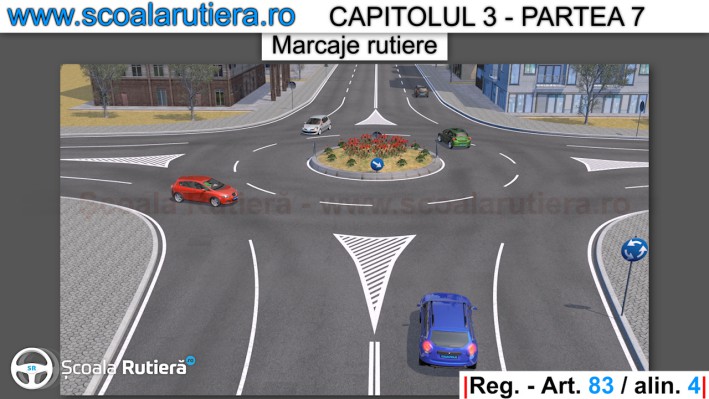 (4) Marcajul transversal constând din linii discontinue paralele, aplicate perpendicular sau oblic față de axul drumului, indică locul destinat traversării părții carosabile de către conducători de biciclete sau trotinete electrice. (Alineatul (4) din Articolul 81 a fost modificat și actualizat pe www.scoalarutiera.ro la 06-10-2021)