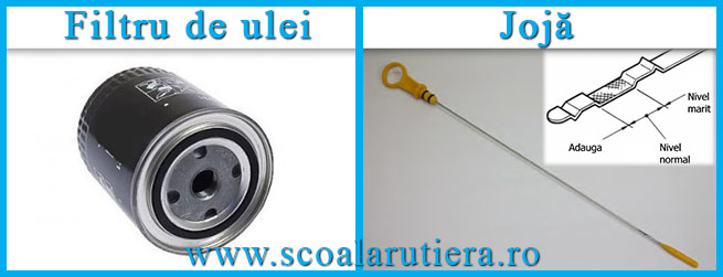 - joja (indicatorul de ulei): este o tijă care indică nivelul uleiului în baie. La capătul tijei se află un semn care indică nivelul minim și cel maxim al uleiului în baia de ulei. Nivelul mic al uleiului din baia de ulei se poate datora unor pierderi de ulei sau consumului exagerat de ulei de către motor. Nivelul mare al uleiului se poate datora apei pătrunse în baia de ulei.