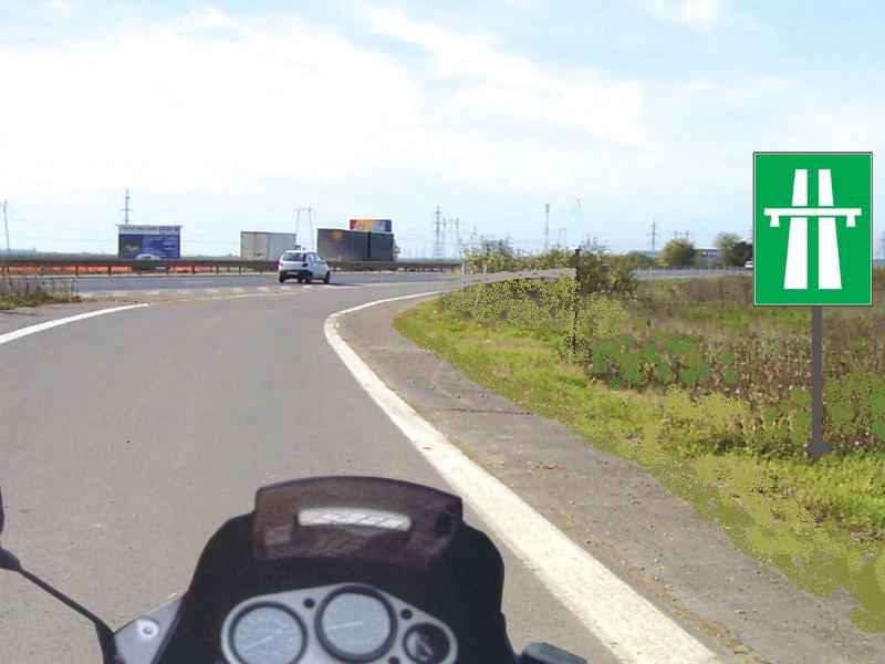 Conducătorul auto va întâlni acest indicator la intrarea pe autostradă. La întâlnirea acestui indicator conducătorii auto sunt obligați să circule cu cel puțin 50 km/h. Pe autostradă sunt interzise: mersul înapoi, staționarea, întoarcerea precum și circulația pe banda de urgență.
